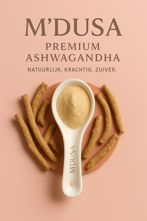 Ashwagandha helpt vrouwen om zich krachtig, kalm en in balans te voelen – precies wat M’DUSA wil uitstralen.